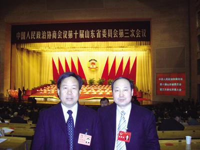 王兆連委員與縣政協(xié)主席許孝義在會場留影 王兆連委員在山東會堂