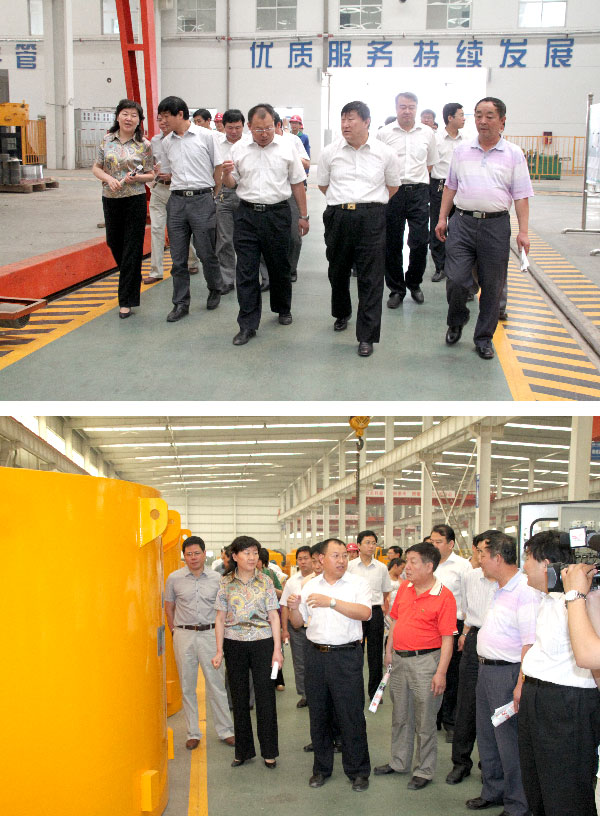 公司執(zhí)行副總邴召榮、技術(shù)中心總經(jīng)理劉風(fēng)亮陪同參觀了公司新工業(yè)園區(qū)和車間生產(chǎn)現(xiàn)場(chǎng)、成品庫,并匯報(bào)了公司節(jié)能環(huán)保產(chǎn)品的研發(fā)生產(chǎn)情況。