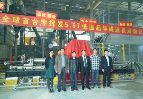 12月8日,全球首臺零揮發(fā)5.5T低溫超導(dǎo)磁選機運行現(xiàn)場啟動儀式在福建泉州隆重舉行。這是中國低溫超導(dǎo)磁選機“0”的突破,也是中國低溫超導(dǎo)技術(shù)轉(zhuǎn)化為生產(chǎn)力的革命性發(fā)展,標(biāo)志著國家十二五科技支撐計劃得到了實質(zhì)性推進,對國民經(jīng)濟甚至國防發(fā)展起到了良好的奠定作用。