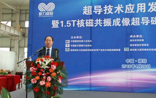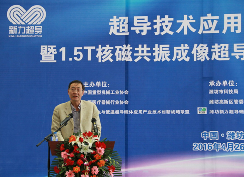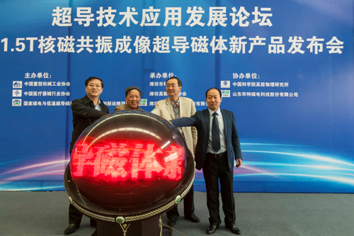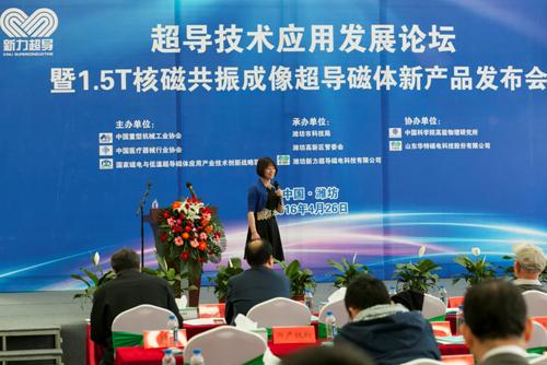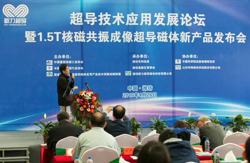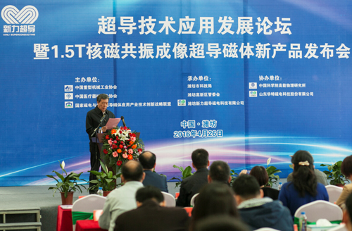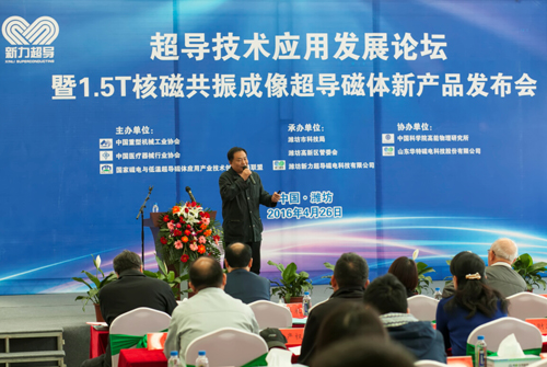 2016年4月26 日,“超導(dǎo)技術(shù)應(yīng)用發(fā)展論壇”和“1.5T(特斯拉)核磁共振成像超導(dǎo)磁體新產(chǎn)品發(fā)布會(huì)”在濰坊新力超導(dǎo)磁電科技有限公司隆重召開。
