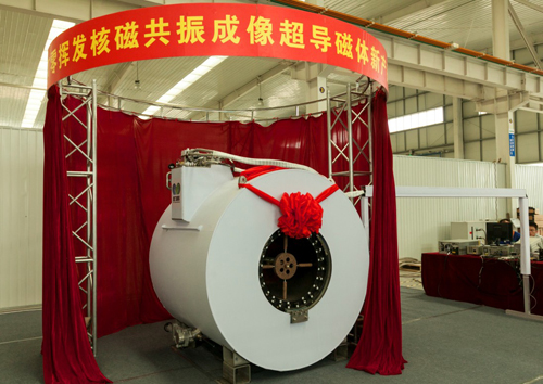 中科院甘子釗院士、濰坊市相關(guān)領(lǐng)導(dǎo)、新力超導(dǎo)公司董事長(zhǎng)王兆連共同為1.5T核磁共振成像超導(dǎo)磁體新產(chǎn)品進(jìn)行了揭幕儀式。