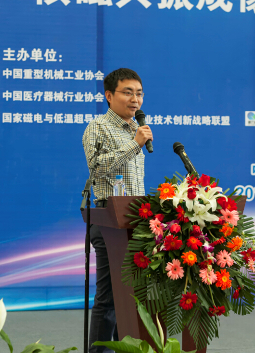 山東省科技廳總工程師畢建明代表省科技廳發(fā)表講話,對(duì)出席論壇的嘉賓表示歡迎,對(duì)論壇主辦單位表示祝賀,介紹了國(guó)家“十三五”中堅(jiān)持科技創(chuàng)新發(fā)展的綱要,“中國(guó)制造2025”的“中國(guó)要從制造業(yè)大國(guó)向制造業(yè)強(qiáng)國(guó)轉(zhuǎn)變,實(shí)現(xiàn)制造業(yè)強(qiáng)國(guó)的目標(biāo)。” 指出“生物醫(yī)藥和高性能醫(yī)療器械”屬于“中國(guó)制造2025”布局的十大重點(diǎn)領(lǐng)域之一,祝賀新力超導(dǎo)成功研制1.5T核磁共振成像超導(dǎo)磁體并產(chǎn)業(yè)化推廣,希望3.0T磁共振分子成像超導(dǎo)磁體早日研制成功并產(chǎn)業(yè)化,成為全省乃至全國(guó)高端醫(yī)療器械的領(lǐng)軍企業(yè),帶動(dòng)超導(dǎo)技術(shù)應(yīng)用產(chǎn)業(yè)鏈發(fā)展,省科技廳會(huì)持續(xù)關(guān)注并支持精準(zhǔn)醫(yī)療行業(yè)的發(fā)展。