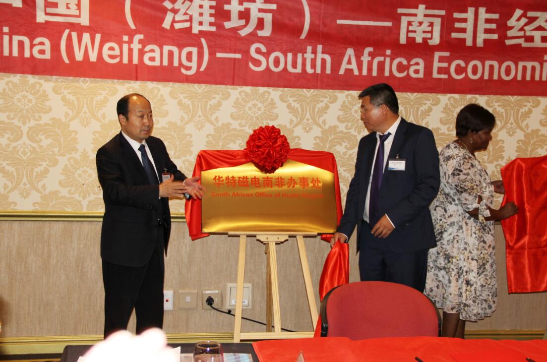 911日下午,由濰坊市人民政府主辦,南非AMG集團公司和山東華特磁電科技股份有限公司共同協辦的“中國(濰坊)—南非經貿懇談會”在美麗的約翰內斯堡市凱撒皇宮大酒店會議廳隆重舉行。