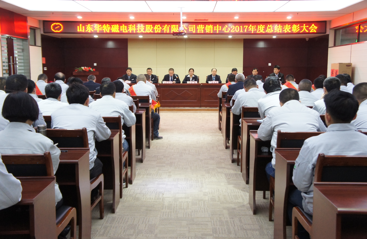 2018年2月11日,山東華特公司2017年度營銷總結表彰大會在公司二樓會議室隆重召開,公司董事長兼總裁王兆連,常務副總裁劉風亮,高級副總裁劉梅,副總裁兼質量總監王建波,副總裁兼營銷中心總經理魏黎明,總裁特別助理兼財務總監孟昭剛,公司總工程師賈洪利,生產中心常務副總經理馮愛濤在主席臺就座,營銷中心副總經理付有良等各事業部經理和全體業務人員、售后人員共100多人參加了本次會議。