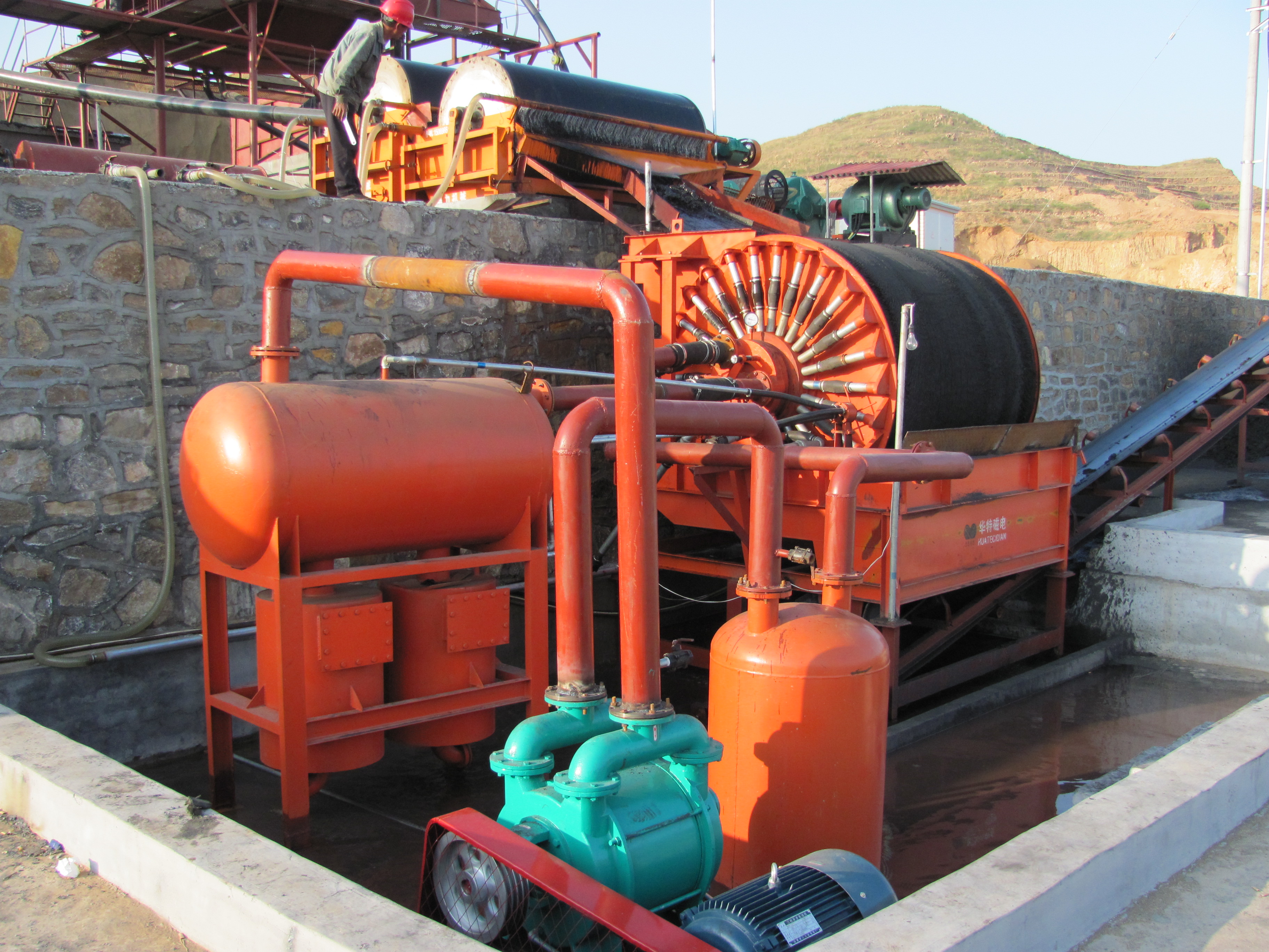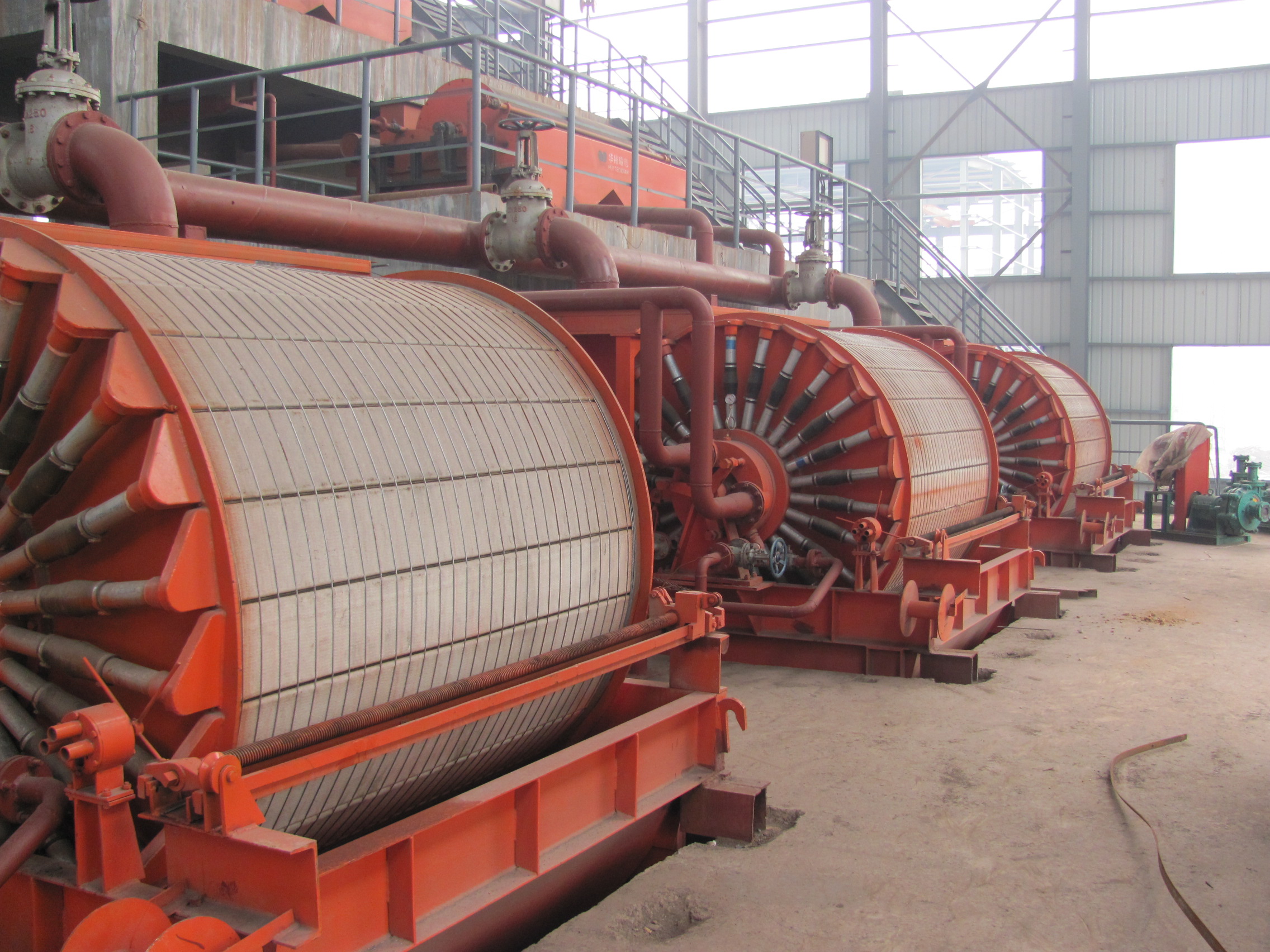 ◆本機(jī)依靠圓筒內(nèi)部磁系作用形成濾餅,磁性物料在磁力和顆粒本身重力作用下呈磁簇狀吸附在濾布上,吸附速度快,效率高。