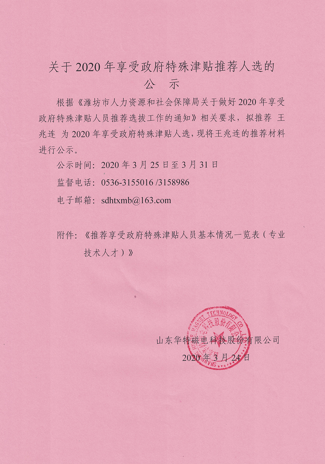 山東華特磁電集團股份有限公司是創新型試點企業,高新技術企業,火炬計劃臨朐磁電裝備特色產業基地龍頭企業,磁電與低溫超導磁體創新戰略聯盟理事長單位、中國重型機械工業協會副理事長單位。