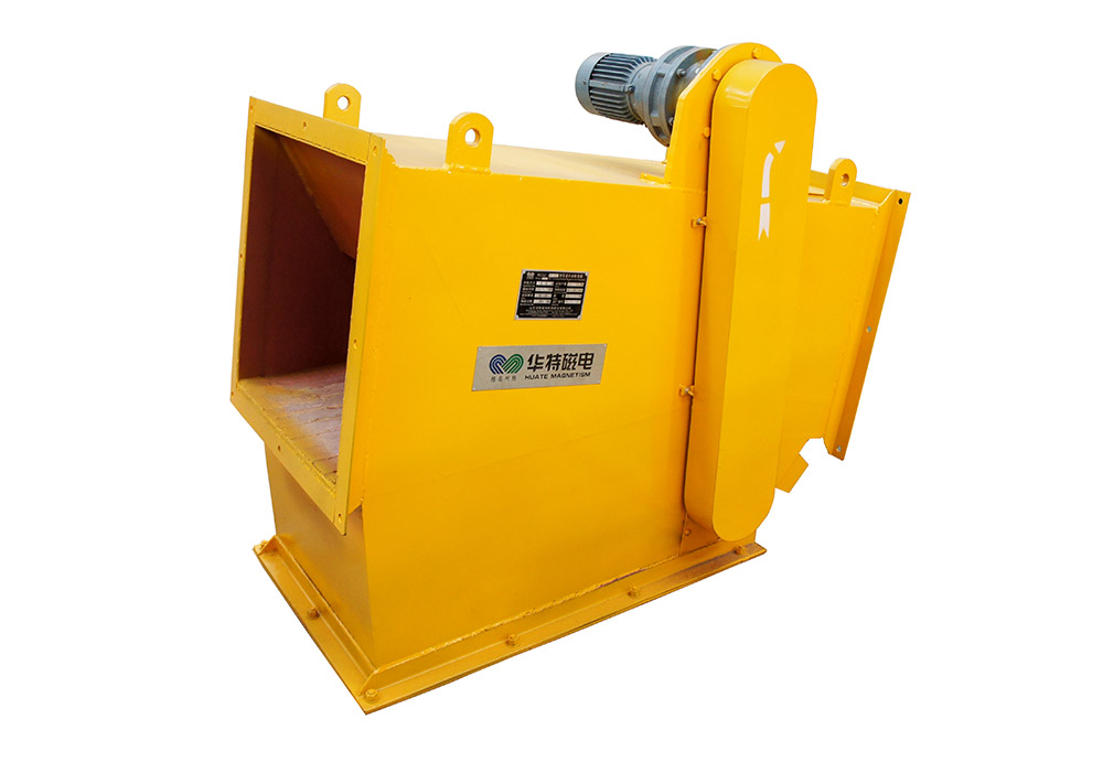 當物料從下料管道中經過精細除鐵器時,由前端的分流板將物料分流減...